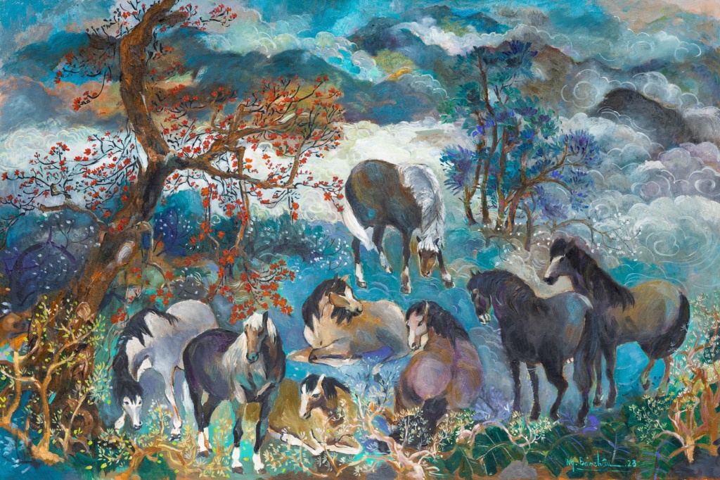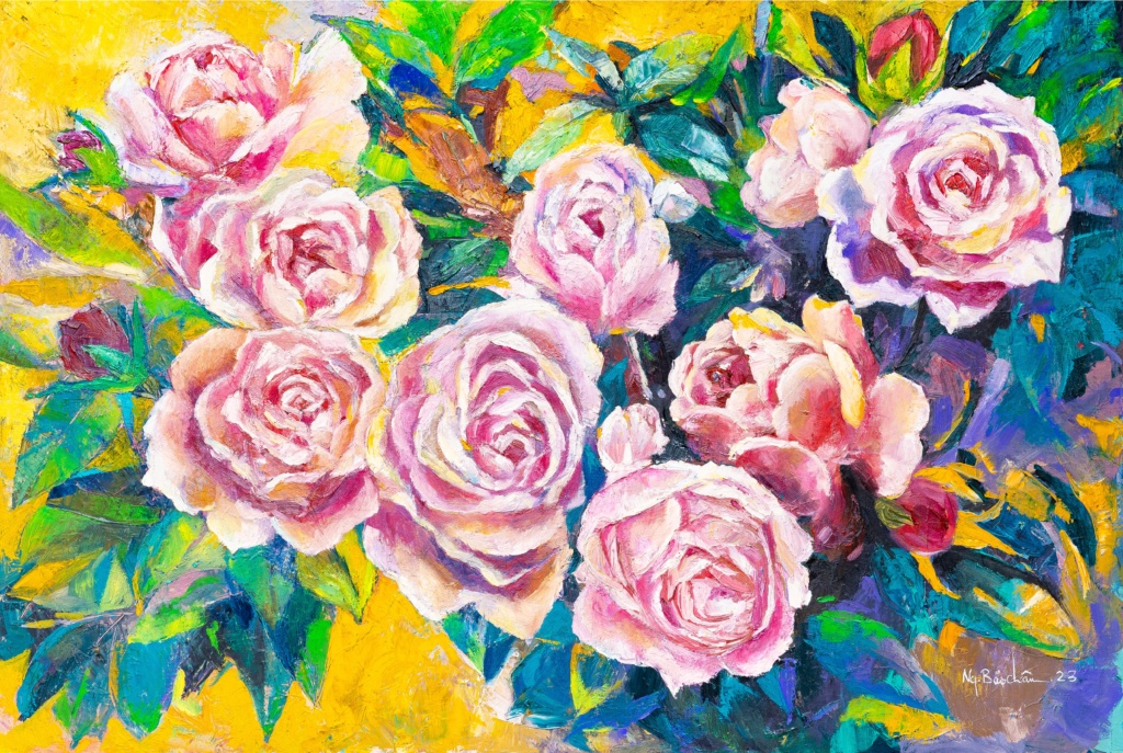Tại đây, bạn sẽ bắt gặp những mảng màu được khắc họa như những dòng suy tưởng, những bố cục phá cách mở ra chiều không gian nội tâm, và những vệt cọ dày như lời thì thầm của tâm thức. Mỗi tác phẩm không chỉ là kết tinh của kỹ thuật hội họa, mà còn là sự phản chiếu của những trạng thái cảm xúc con người: yêu thương, cô đơn, khao khát và giác ngộ.