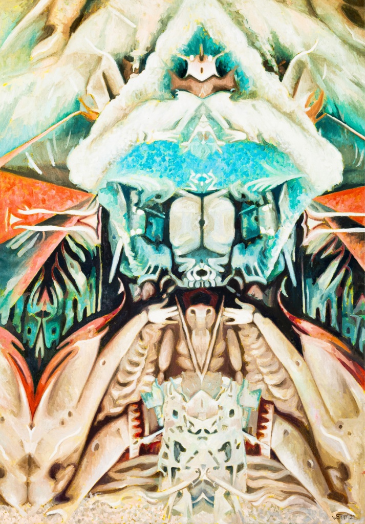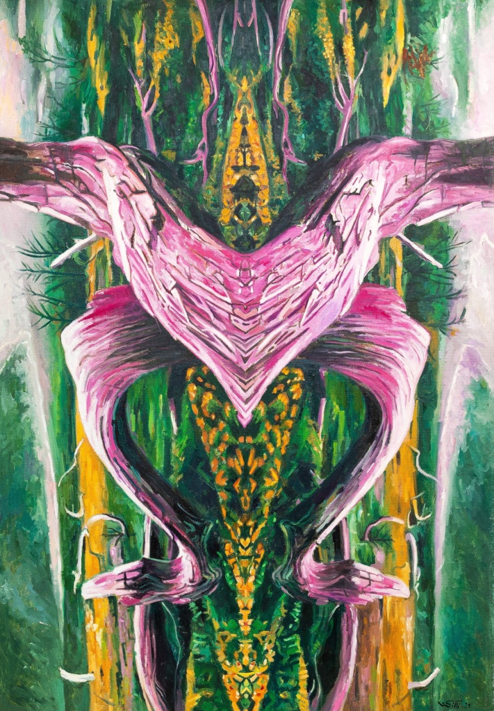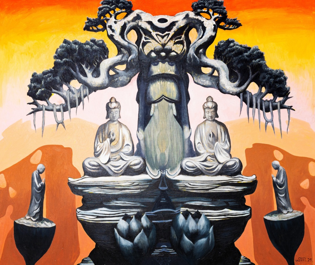 “Bố cục đăng đối” không làm đóng khung tư duy, mà ngược lại, mở ra không gian của sự tĩnh tại, đối chiếu, và soi rọi nội tâm. Mỗi tác phẩm là một tấm gương thầm lặng, mời người xem bước vào đối thoại với chính mình – giữa cái động và cái tĩnh, giữa khát vọng và buông xả, giữa cái tôi và cái ta.