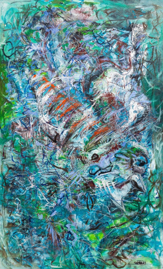 Willi không vẽ để làm đẹp. Anh vẽ để nhắn nhủ: nếu con người cứ mãi cãi vã, mãi chiến tranh, và phá hoại lẫn nhau, thì tương lai sẽ chỉ là khói bụi, tận diệt. Và dù nguyện ước hòa bình, yêu thương có vẻ hơi lý tưởng giữa thế giới xung đột này, anh vẫn tin – vẫn vẽ – như thể từng bức tranh là một hạt giống niềm tin và hy vọng. Từ 2012 đến 2025, Willi đã hoàn thành 379 tác phẩm. Sơn dầu có, sơn mài có, lụa cũng có – như thể anh đang thử nghiệm mọi chất liệu để kể câu chuyện đời mình một cách trọn vẹn nhất. Bên cạnh đó là hàng ngàn bản thảo, phác thảo, ghi chép, những bản nháp không bao giờ được trưng bày, nhưng lại là bằng chứng cho một đam mê không bao giờ ngủ yên.